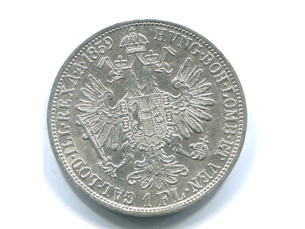 František Josef I. 1 zlatník 1859/A. Bez tečky za REX. Ag.