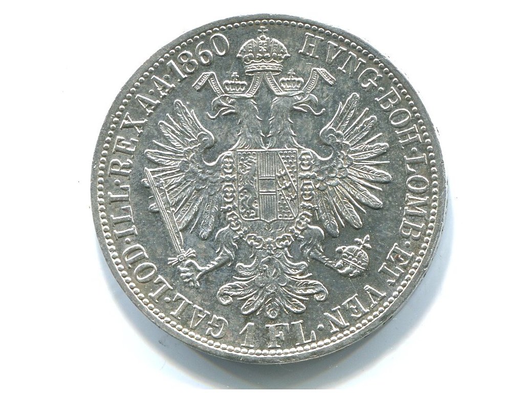 František Josef I. 1 zlatník 1860/A, bez tečky za REX. Ag.