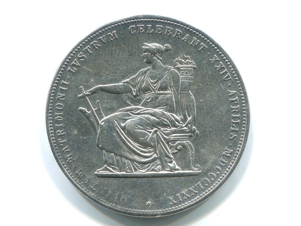 František Josef I. 2 zlatníky 1879. Stříbrná svatba. Ag.
