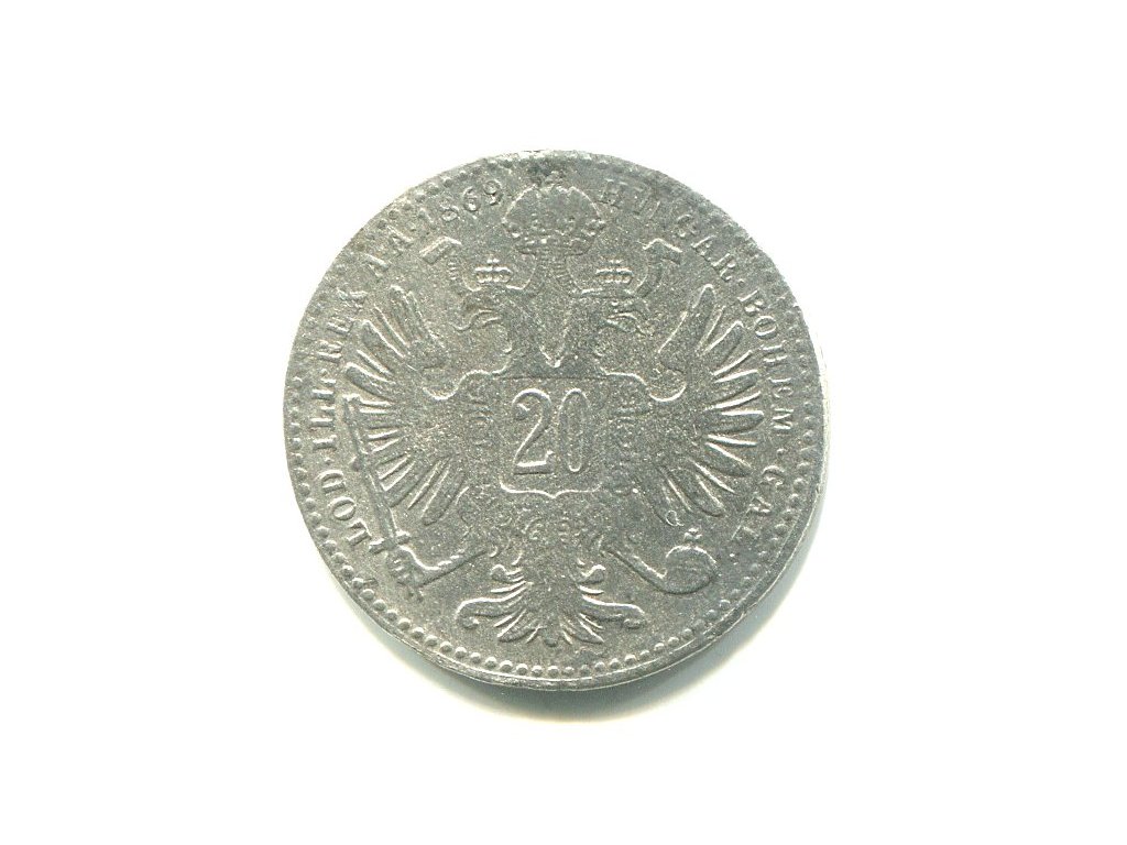 František Josef I. 20 Kreuzer 1869. Ag.