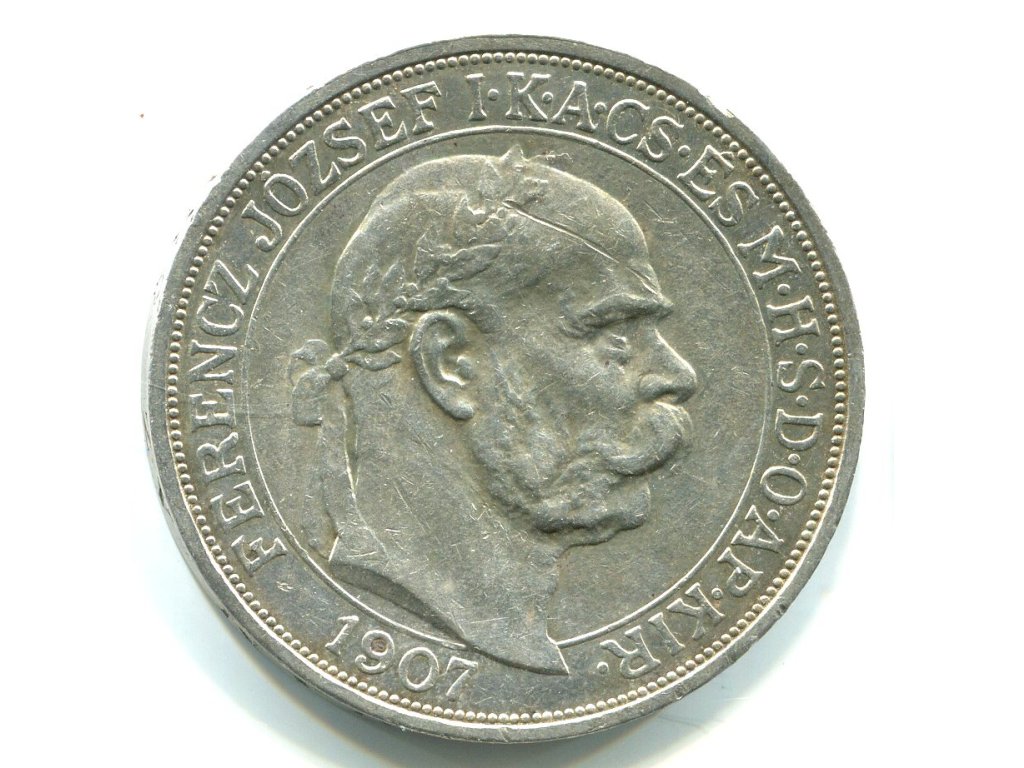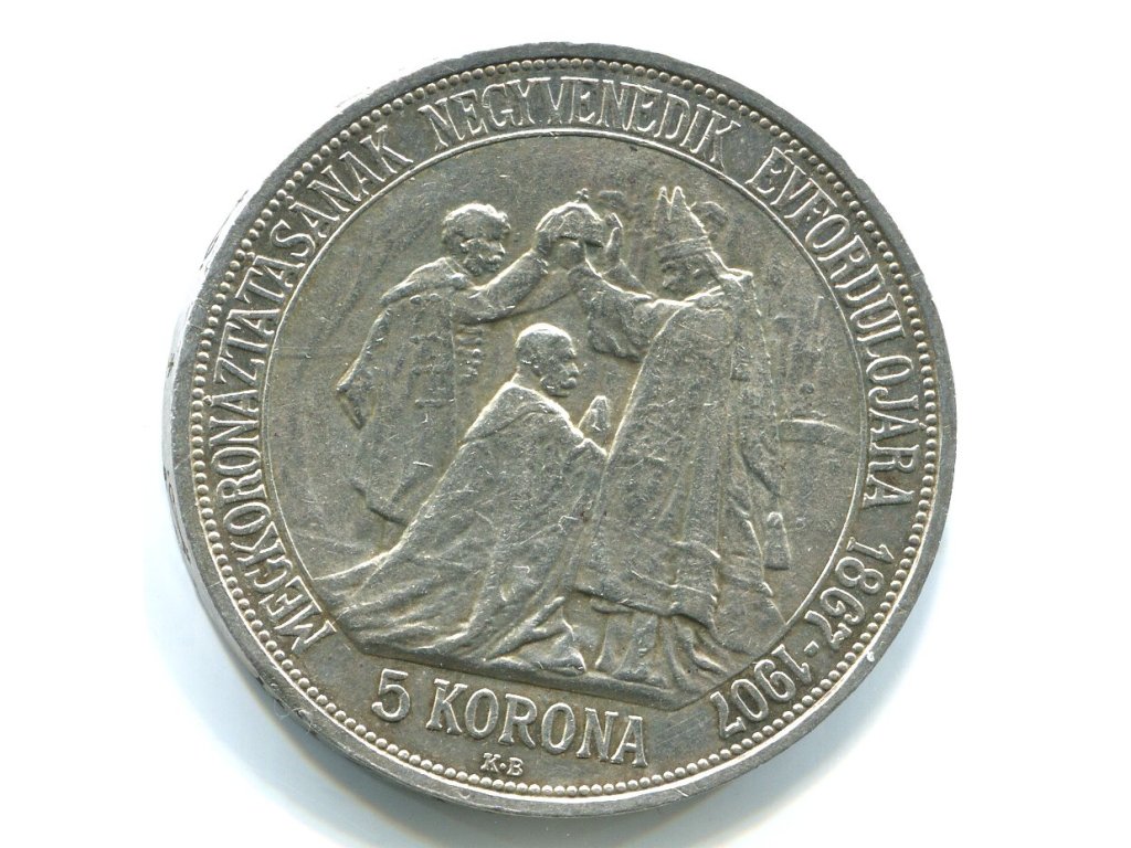František Josef I. 5 korona 1907/KB. Korunovace. Ag.