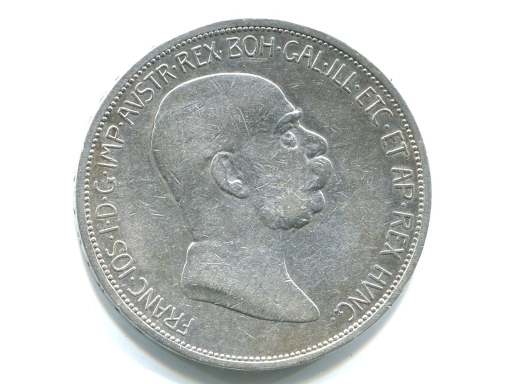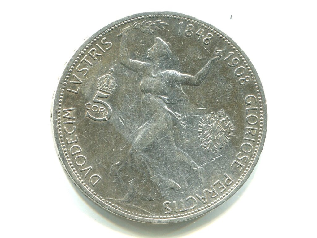 František Josef I. 5 Kronen 1908. Jubilejní. Ag.