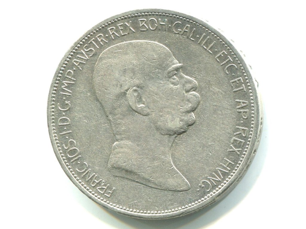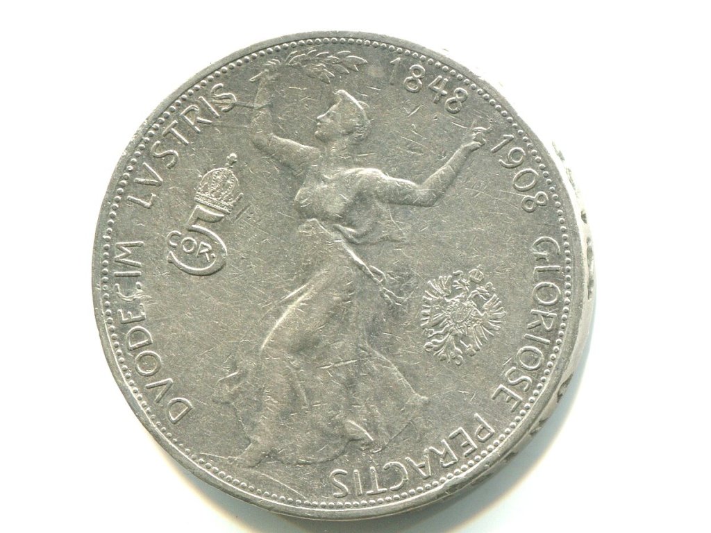 František Josef I. 5 Kronen 1908. Jubilejní. Ag.