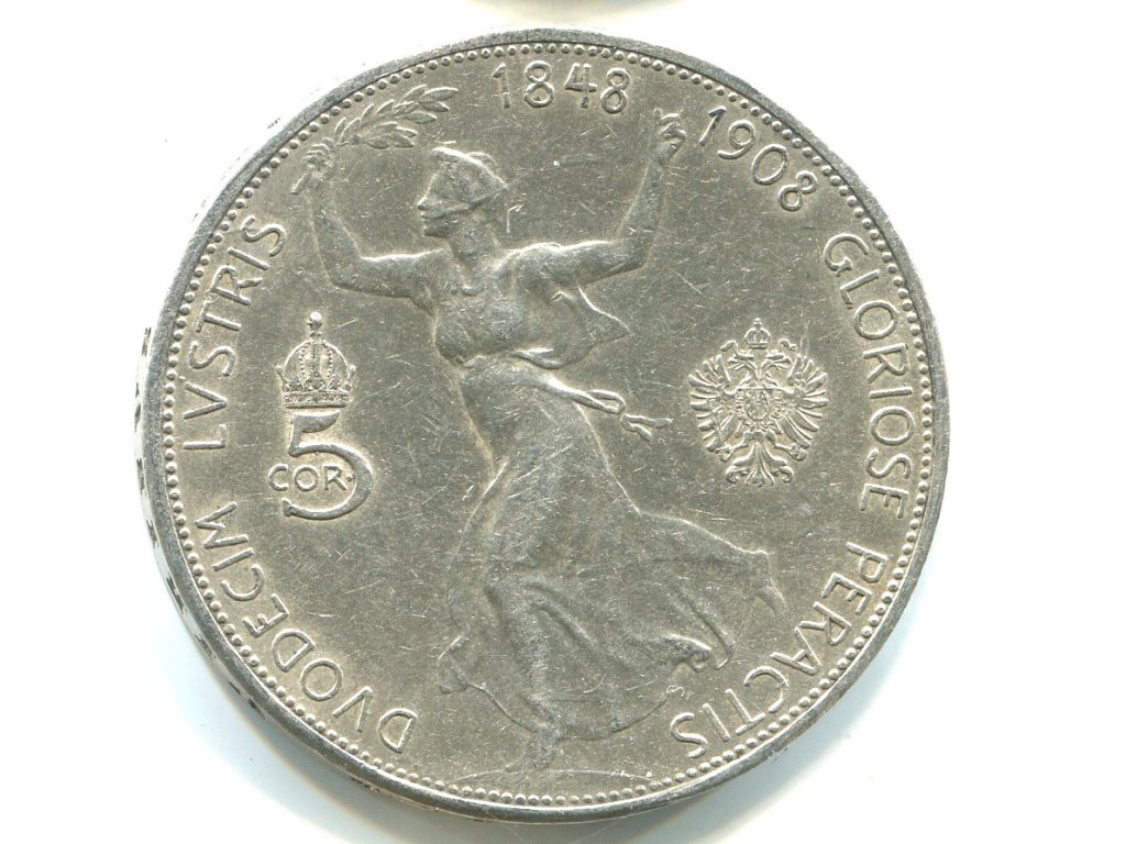 František Josef I. 5 Kronen 1908 Jubilejní. Ag.