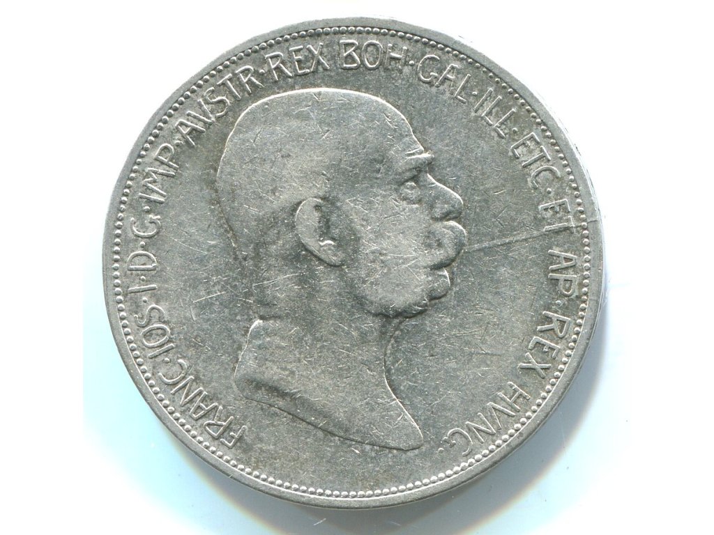 František Josef I. 5 Kronen 1908 Jubilejní. Ag.