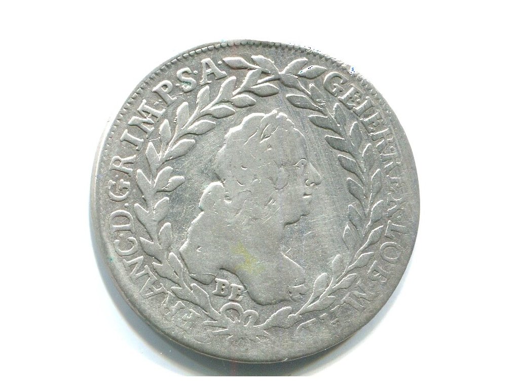 František Lotrinský. 20 Kreuzer 1765/BE/EvM-D. Kremnica. Posmrtný. Ag.