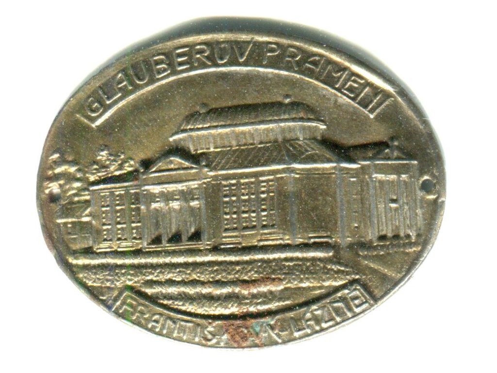 FRANTIŠKOVY LÁZNĚ. Glauberův pramen. Štítek na hůl.