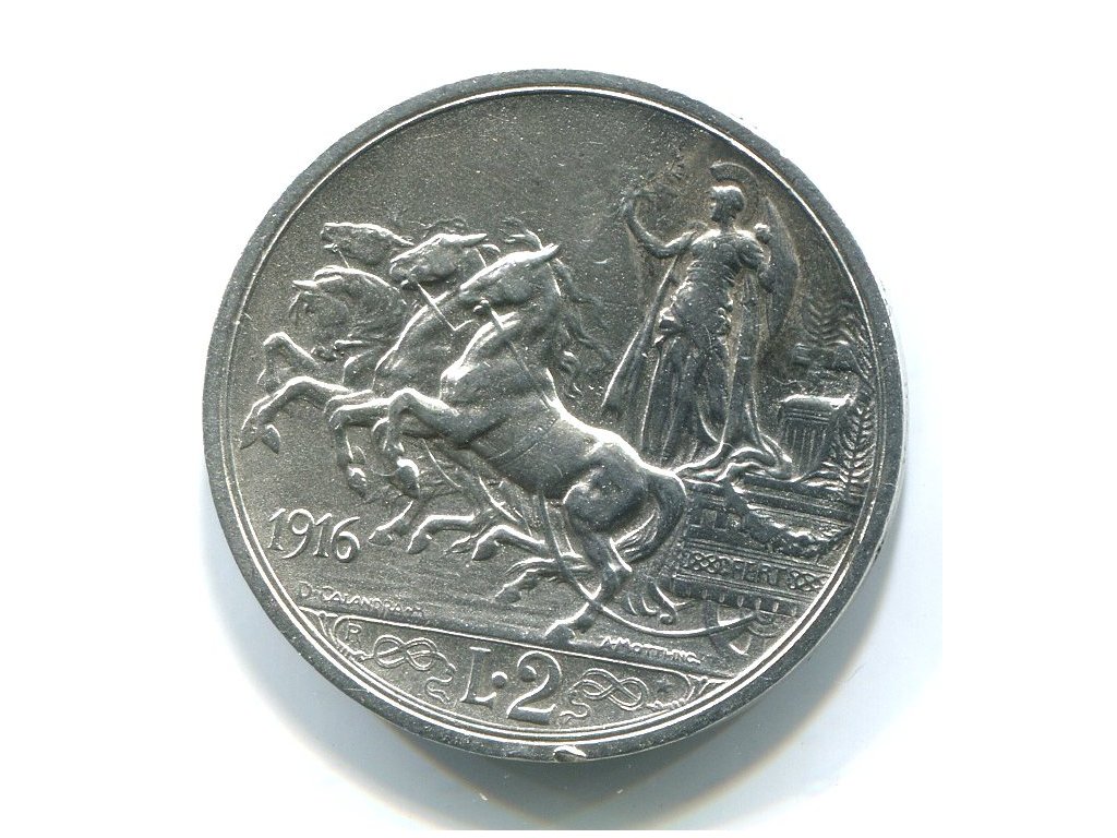 ITÁLIE. 2 lire 1916. Ag.