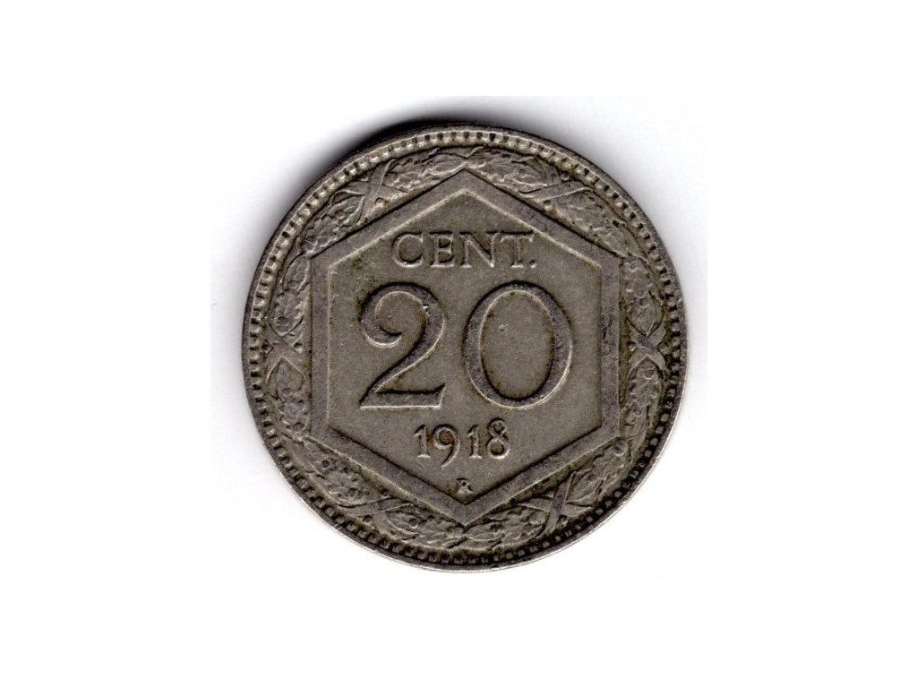 ITÁLIE. 20 centesimi 1918. Hrana vroubkovaná.