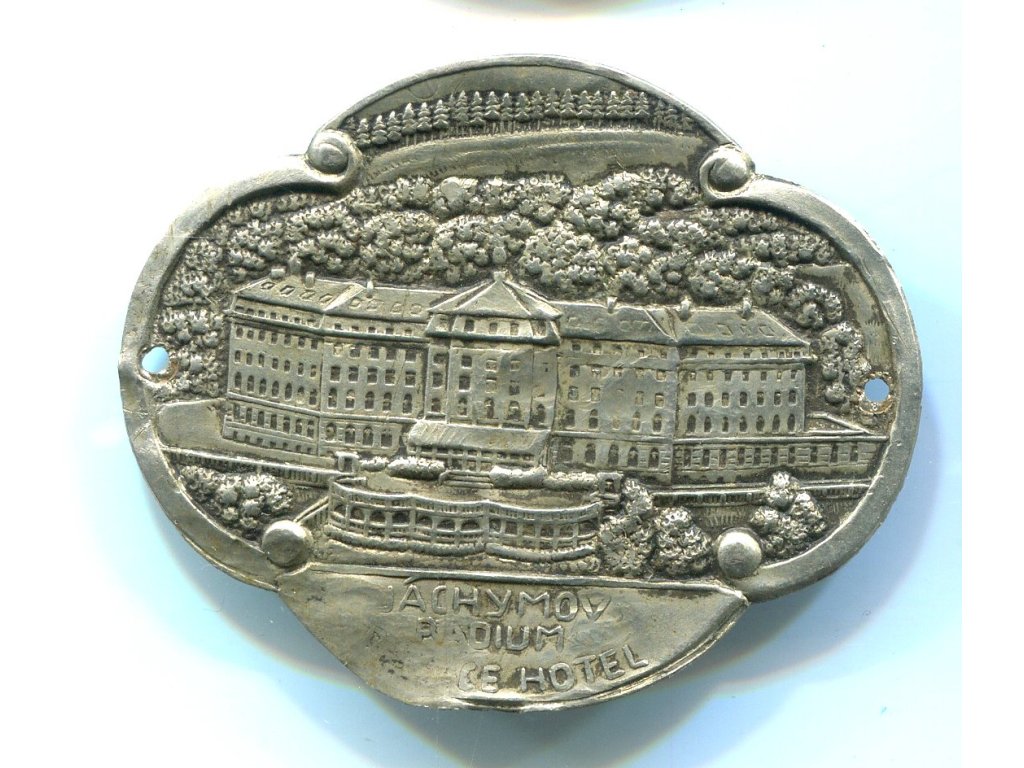 JÁCHYMOV. Radium Palace Hotel. Štítek na hůl.