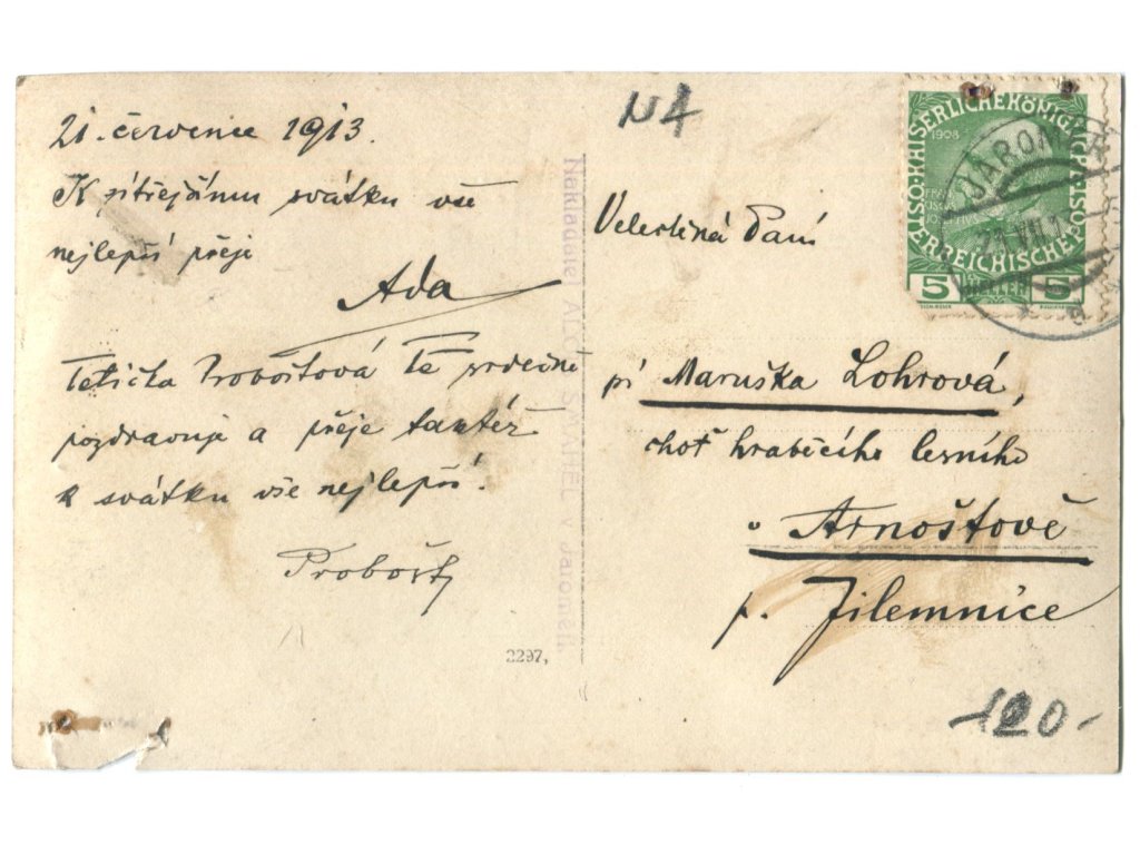 JAROMĚŘ. Partie ze zahrady s domy. 1913.