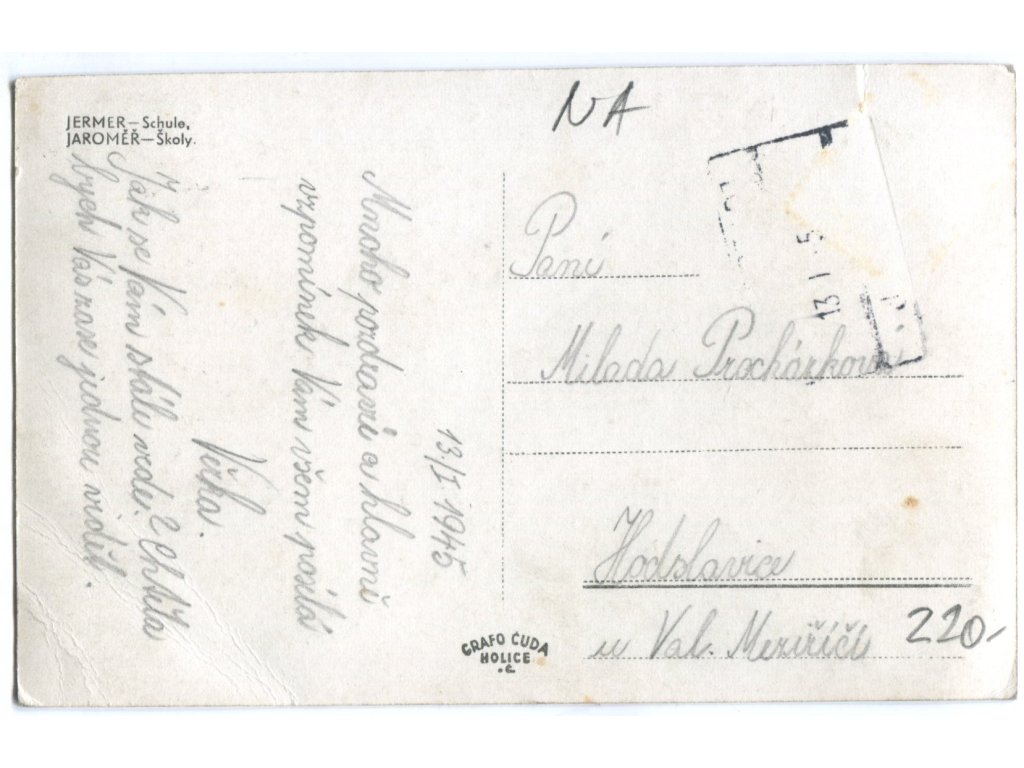 JAROMĚŘ. ŠKOLY / Jermer. Schule. 1945.