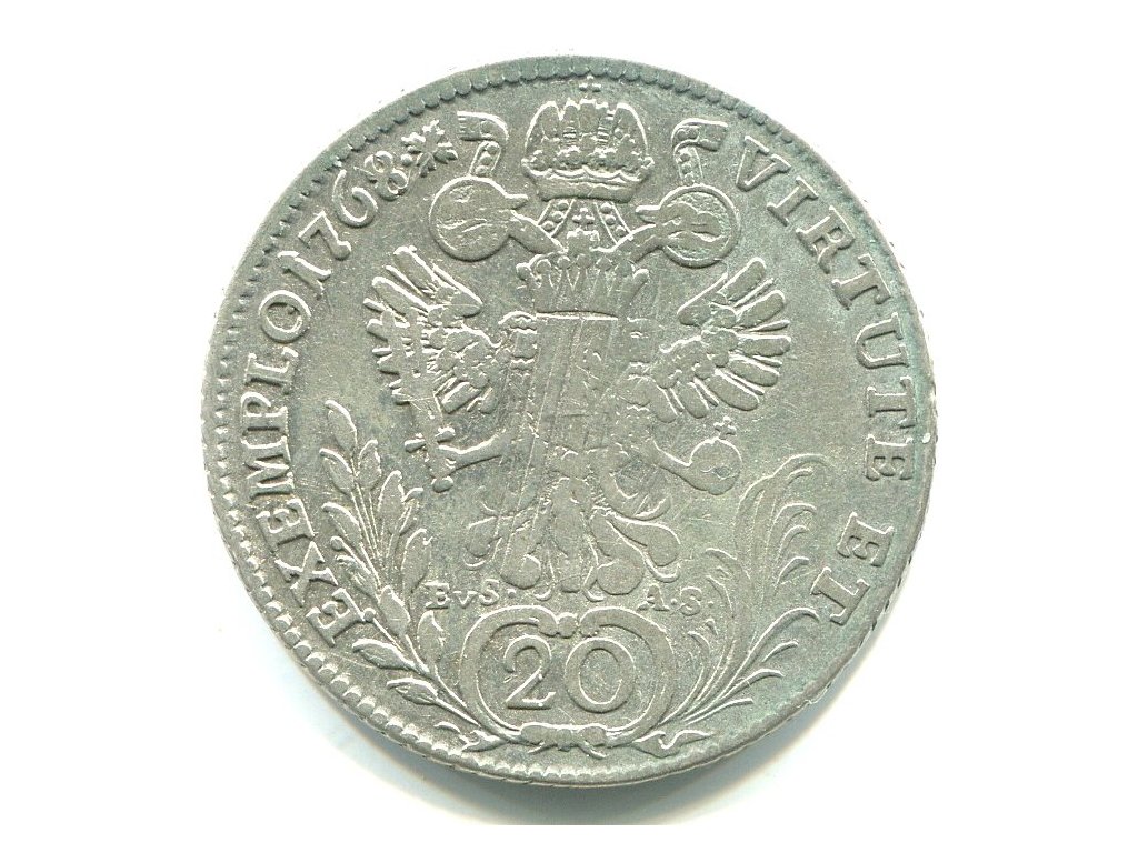 Josef II. 20 Kreuzer 1768/C/EvS-AS. Praha. Ag.