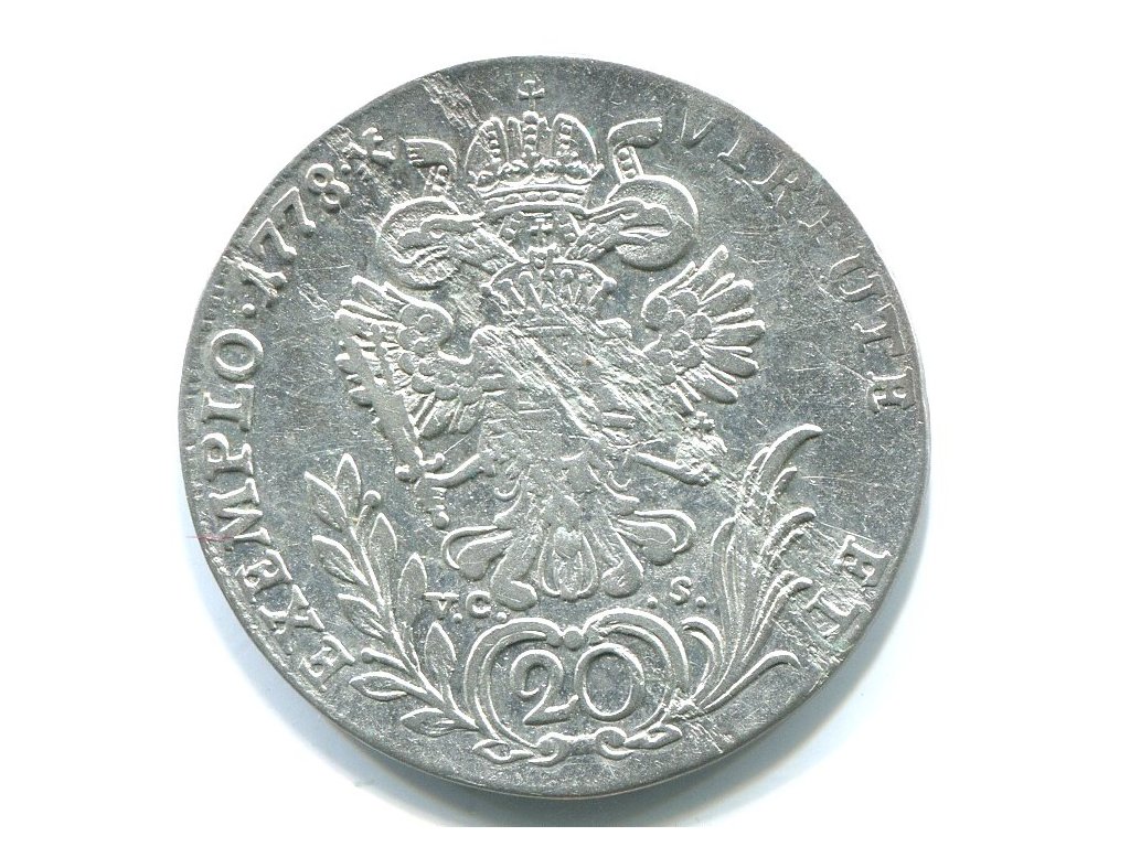 Josef II. 20 Kreuzer 1778/F/VS-C. Hall. Ag.