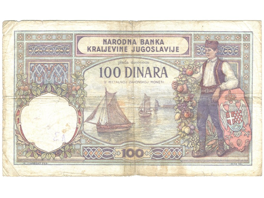 JUGOSLÁVIE. 100 dinara 1929. Série И.