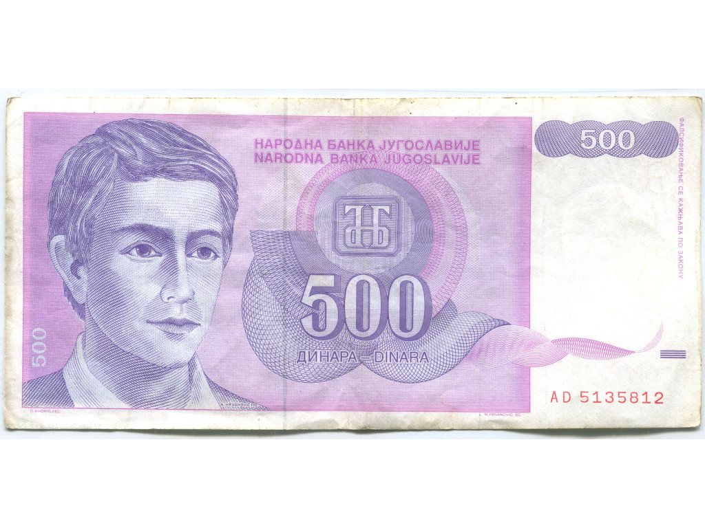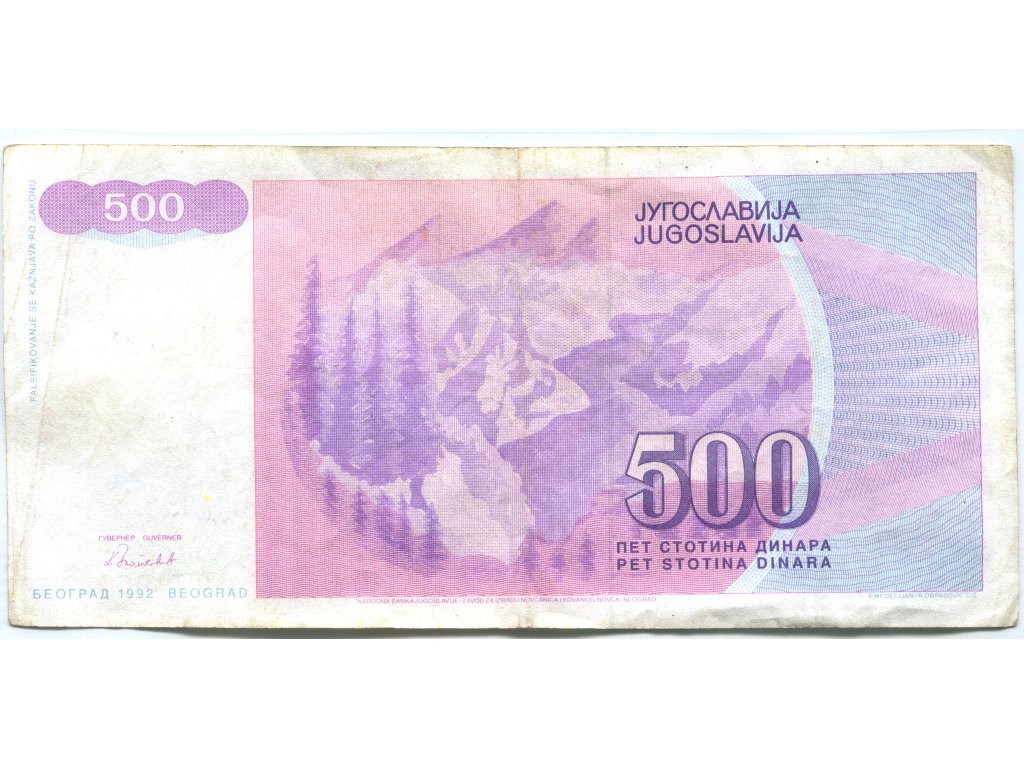 JUGOSLÁVIE. 500 dinara 1992. Pi. 113.