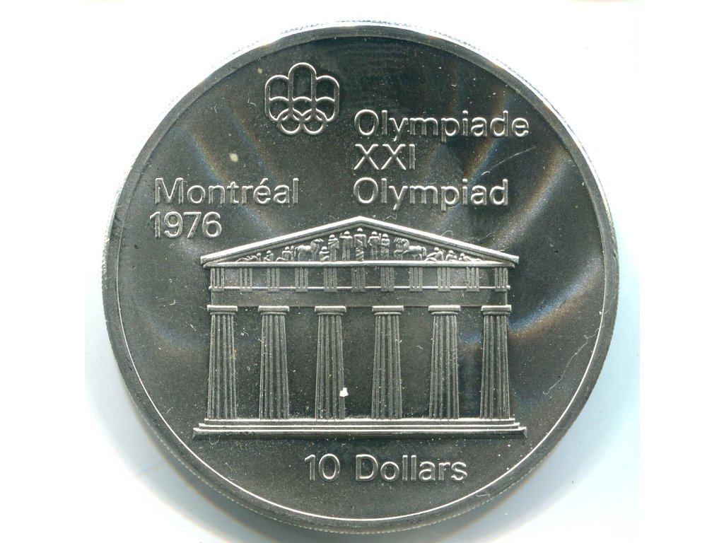 KANADA. 10 dollars 1974. Olympijské hry Montreal 1976. Diův chrám. Ag.