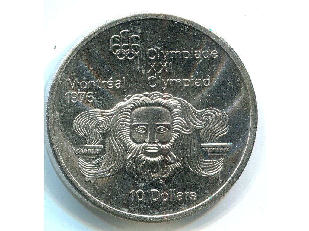 KANADA. 10 dollars 1974. Olympijské hry Montreal 1976. Zeus. Ag.