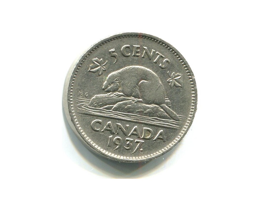 KANADA. 5 cents 1937. Tečka za letopočtem.