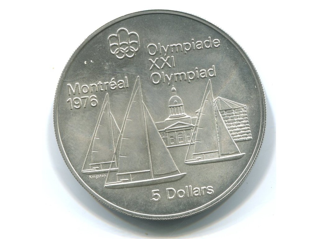 KANADA. 5 dollars 1973. Olympijské hry Montreal 1976. Jachting. Ag.