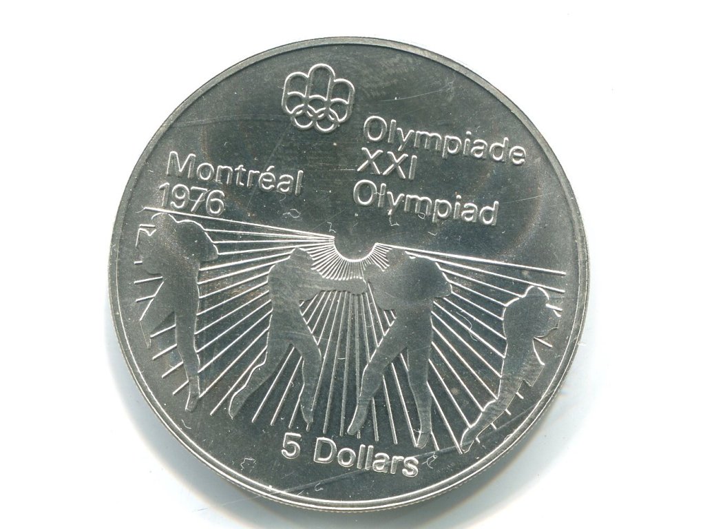 KANADA. 5 dollars 1976. Olympijské hry Montreal 1976. Box. Ag.