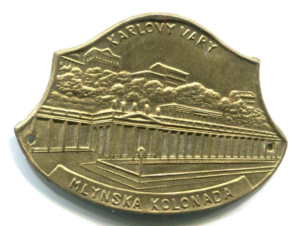KARLOVY VARY. Mlýnská kolonáda. Štítek na hůl.