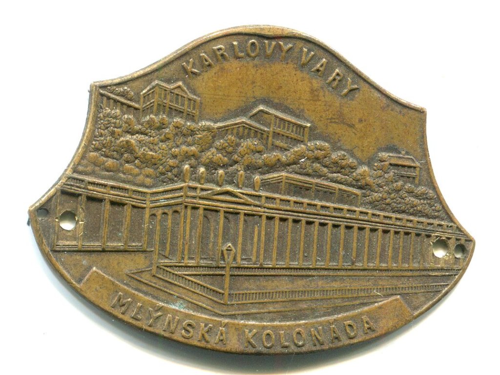 KARLOVY VARY. Mlýnská kolonáda. Štítek na hůl.