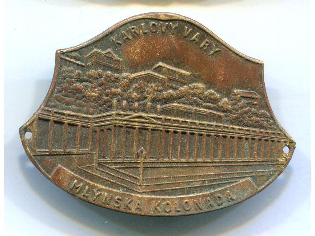 KARLOVY VARY. Mlýnská kolonáda. Štítek na hůl.