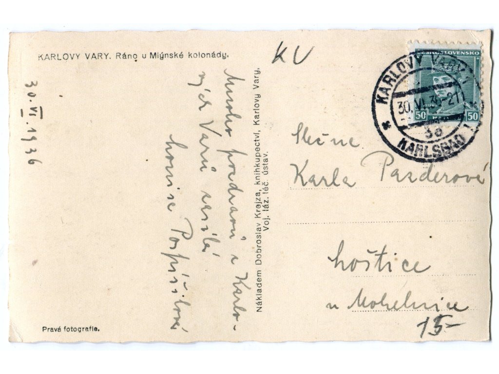 KARLOVY VARY. Ráno u Mlýnské kolonády. 1936.