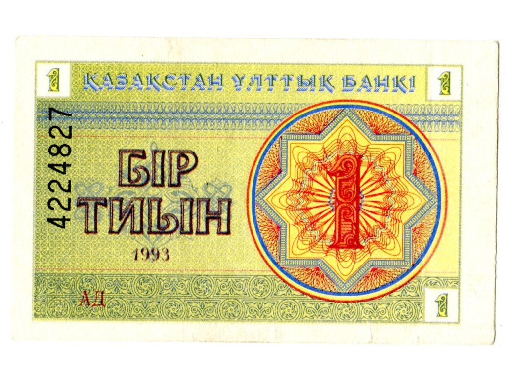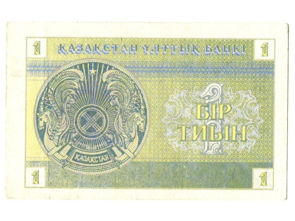 KAZACHSTÁN. 1 tiyn 1993. Sériové číslo nahoře. Pi. 1