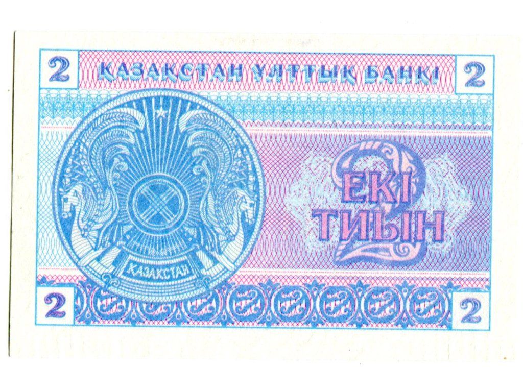 KAZACHSTÁN. 2 tiyn 1993. Sériové číslo dole.