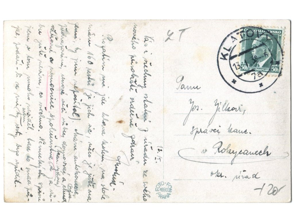 KLATOVY V ZIMĚ. Pohled od severu. 1938.