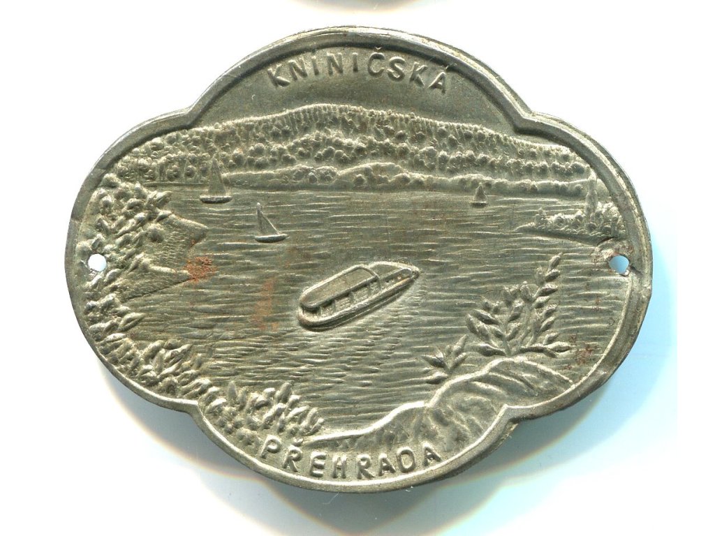 KNÍNIČSKÁ PŘEHRADA. Štítek na hůl.