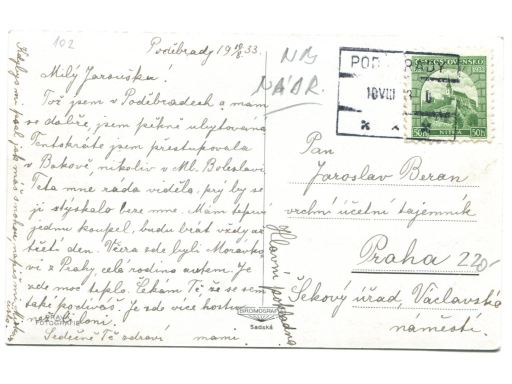 LÁZNĚ PODĚBRADY. Nádraží. 1933.