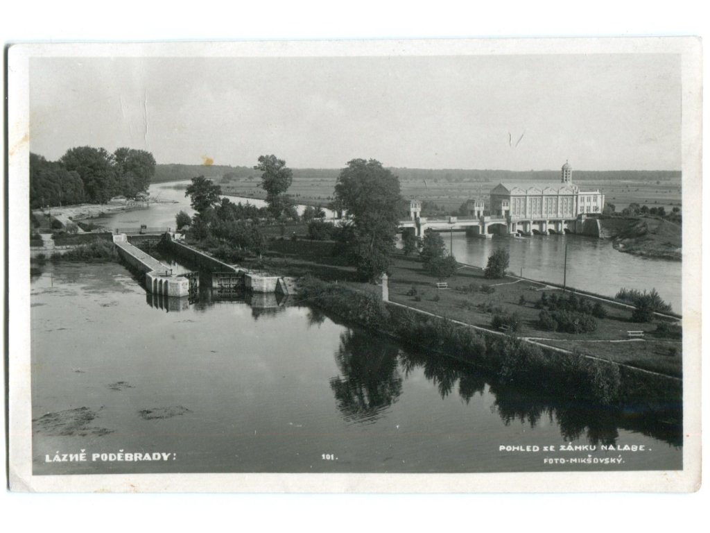 LÁZNĚ PODĚBRADY. Pohled ze zámku na Labe. 1934.