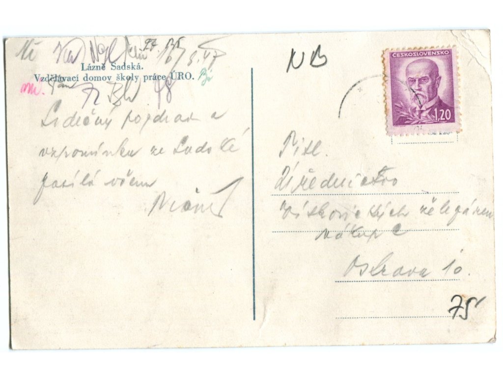 LÁZNĚ SADSKÁ. Vzdělávací domov školy práce ÚRO. 1947.