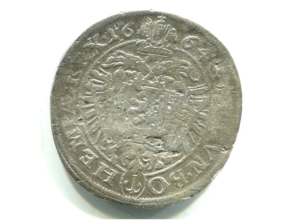 Leopold I. XV Kreuzer 1664 / kotva. Praha. Ag.
