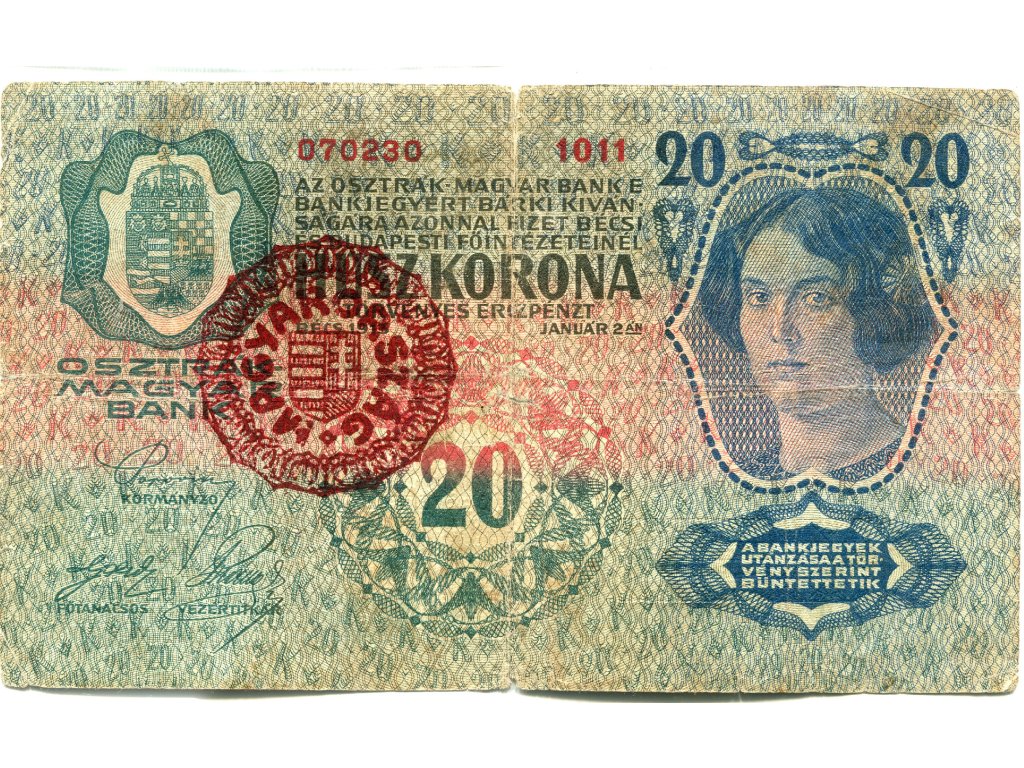 MAĎARSKO. 20 korona 1913 - přetisk MAGYRORSZÁG.