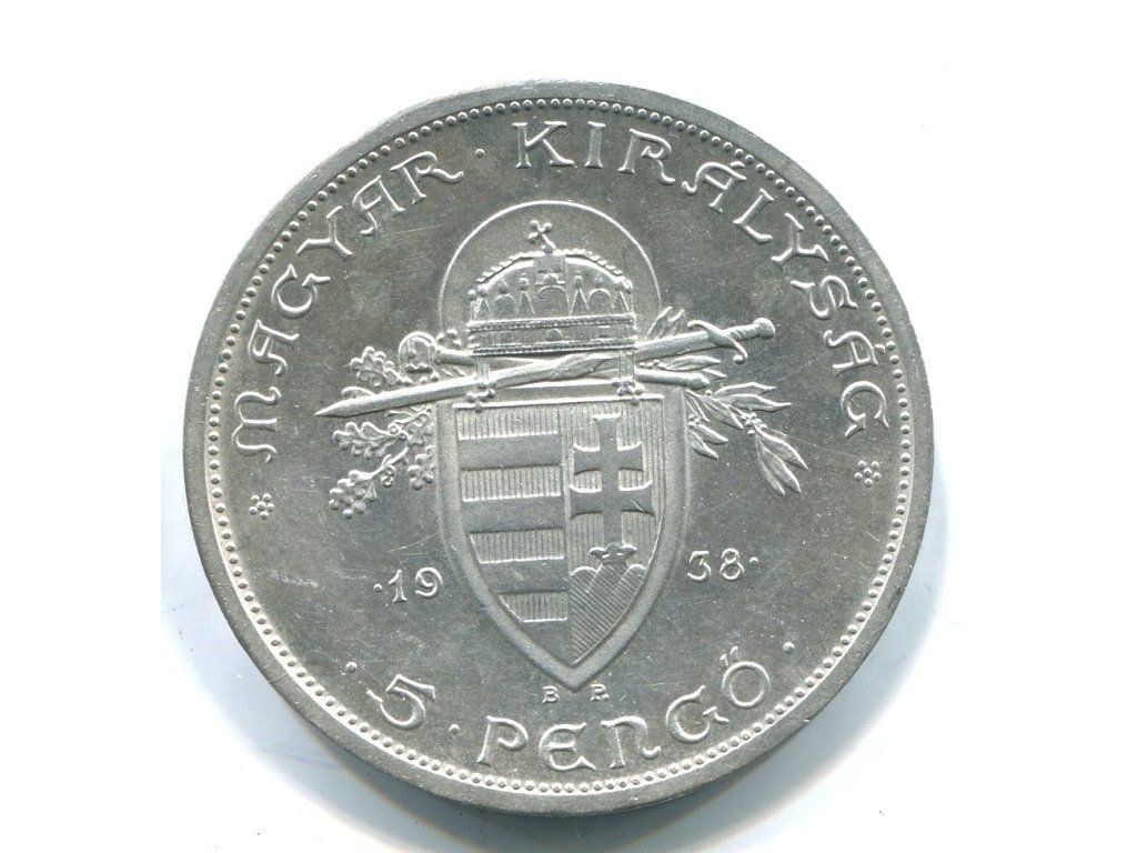 MAĎARSKO. 5 pengö 1938. Sv. Štěpán. Ag.