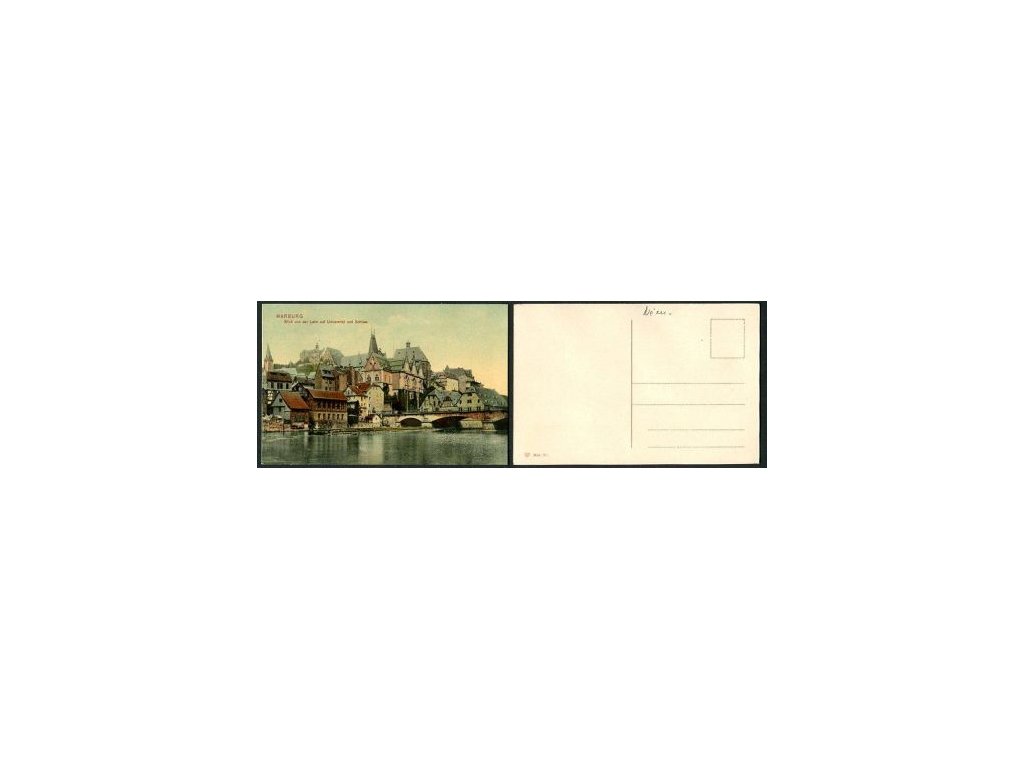 MARBURG. Blick von der Lahn auf Universität und Schloss.