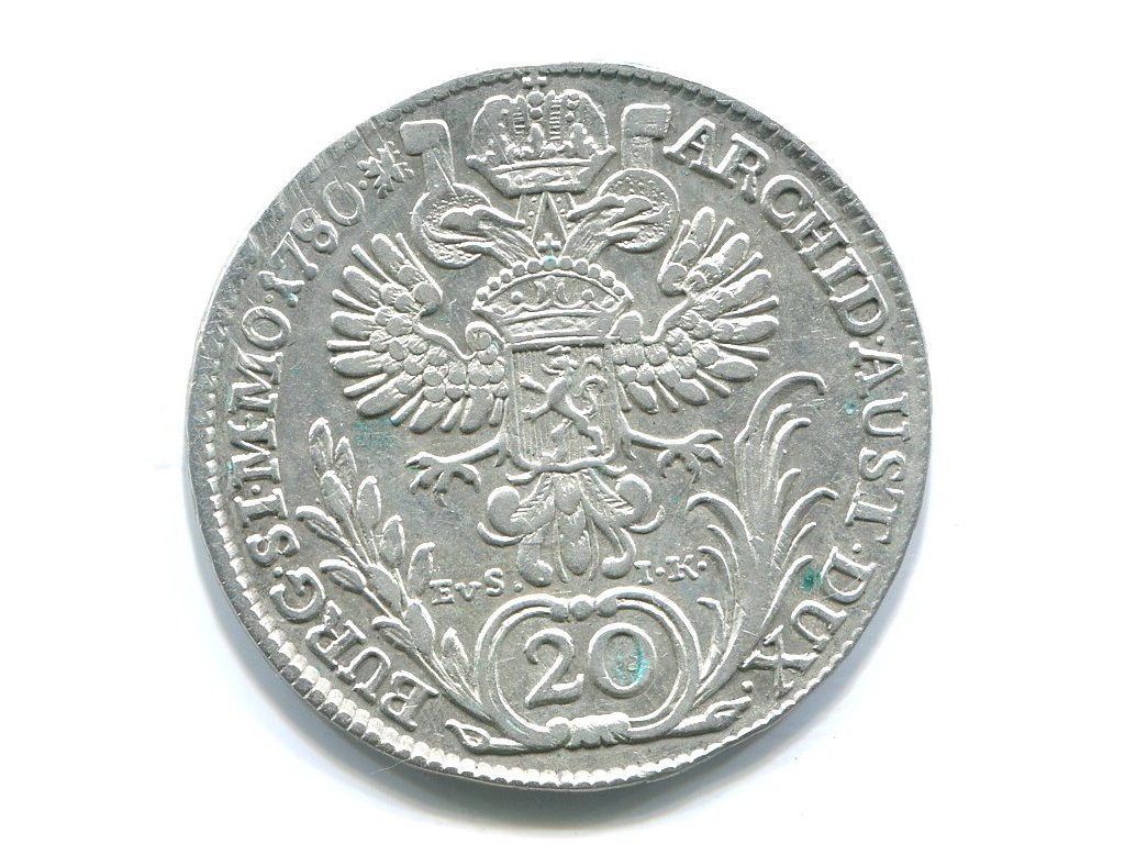 Marie Teresie. 20 Kreuzer 1780/EvS-IK. Praha. Ag.