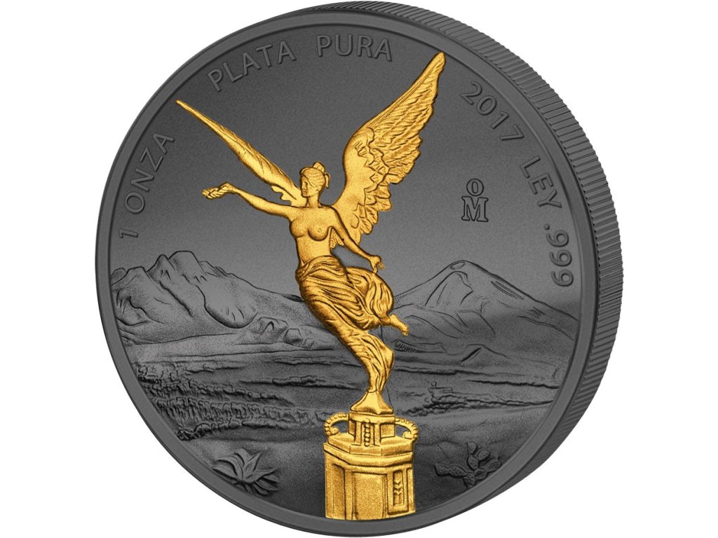 MEXIKO. 1 Onza 2017. 1 Oz. Stříbrná mince pokrytá zlatem a černým rutheniumem.