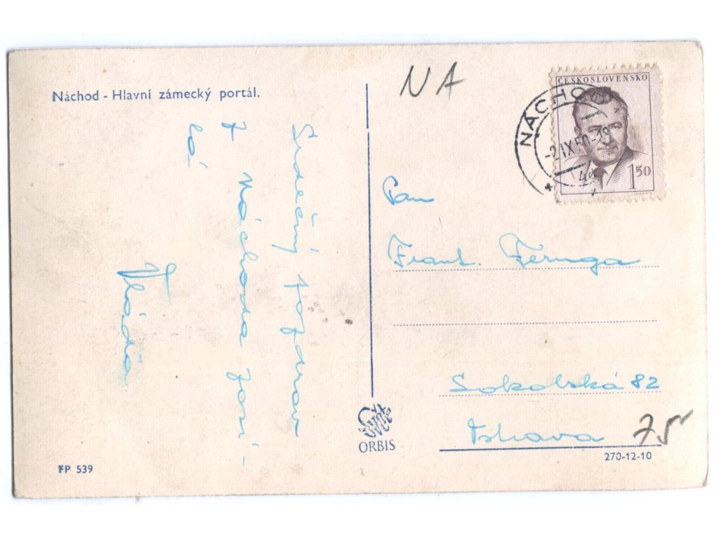 NÁCHOD. Hlavní zámecký portál. 1950.