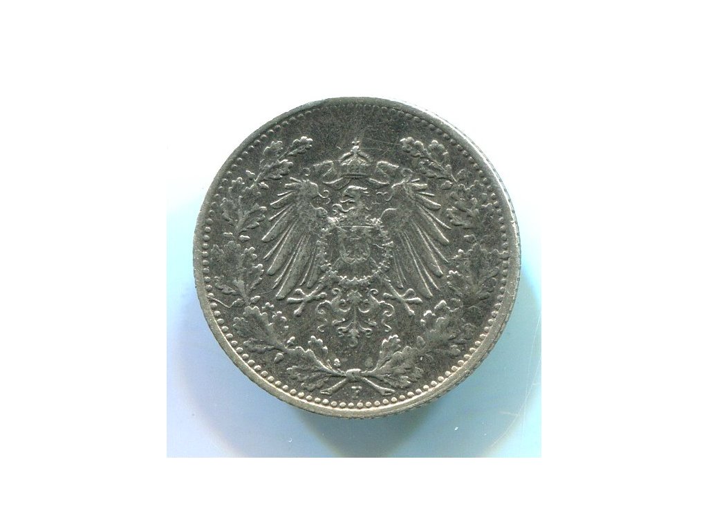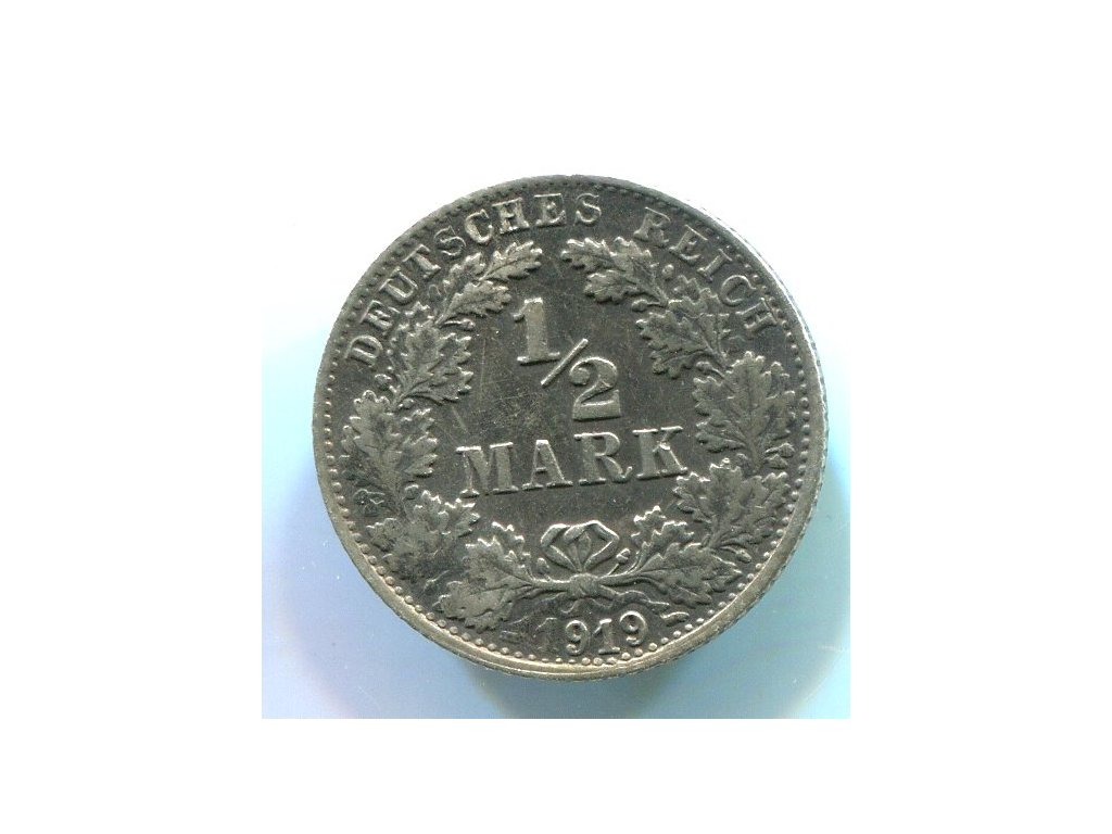 NĚMECKO. 1/2 Mark 1919/F. Ag.