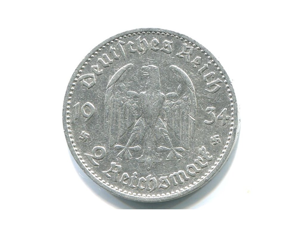 NĚMECKO. 2 Mark 1934/A. Věž + datum.