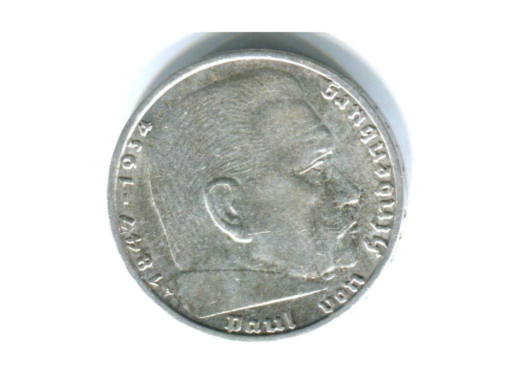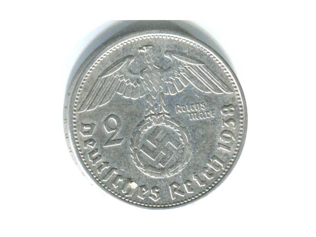 NĚMECKO. 2 Mark 1938/A. Hindenburg, hákový kříž. Ag.