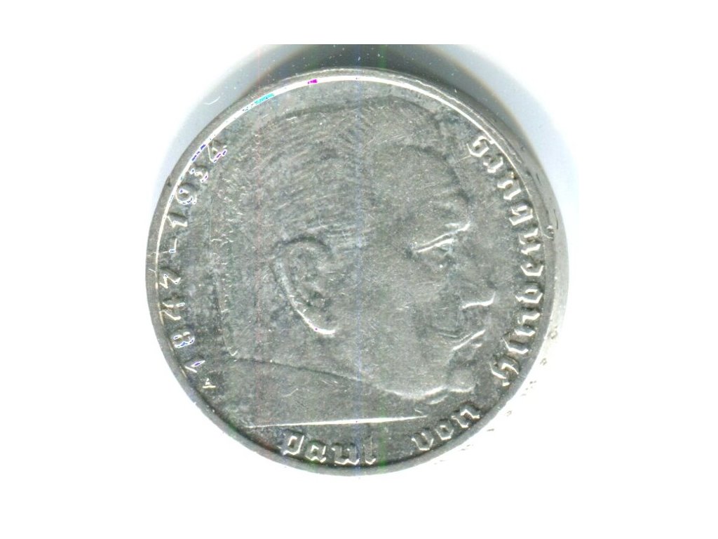 NĚMECKO. 2 Mark 1939/A. Hindenburg, hákový kříž. Ag.