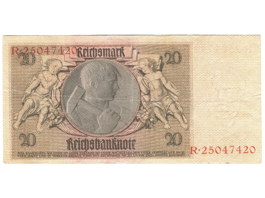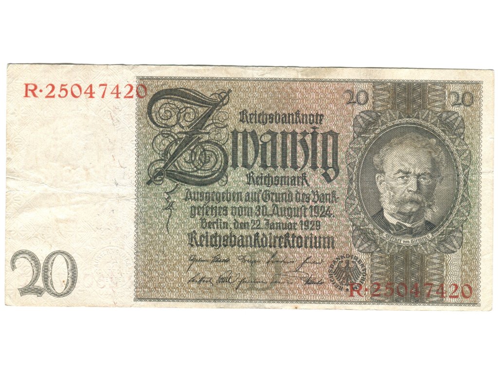 NĚMECKO. 20 Reichsmark. Ro. 174a. 22. 1.1929. Podtisk D, série R.