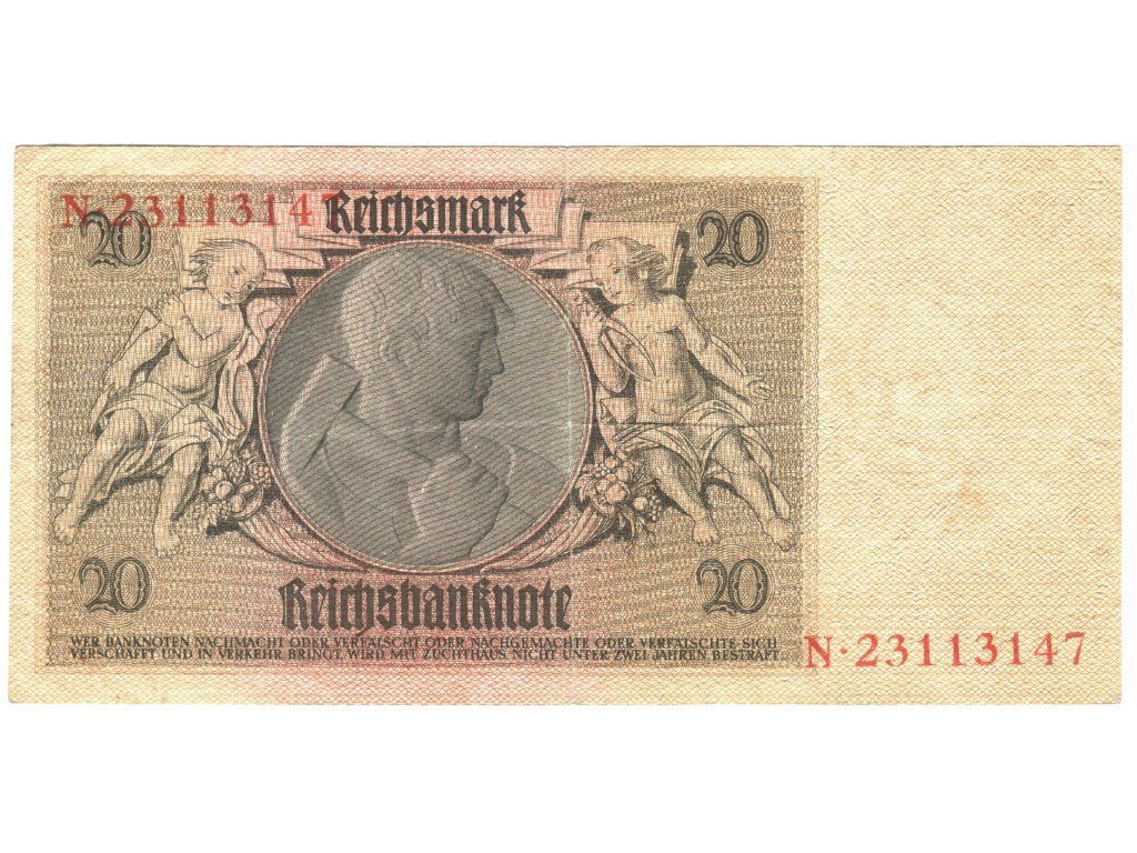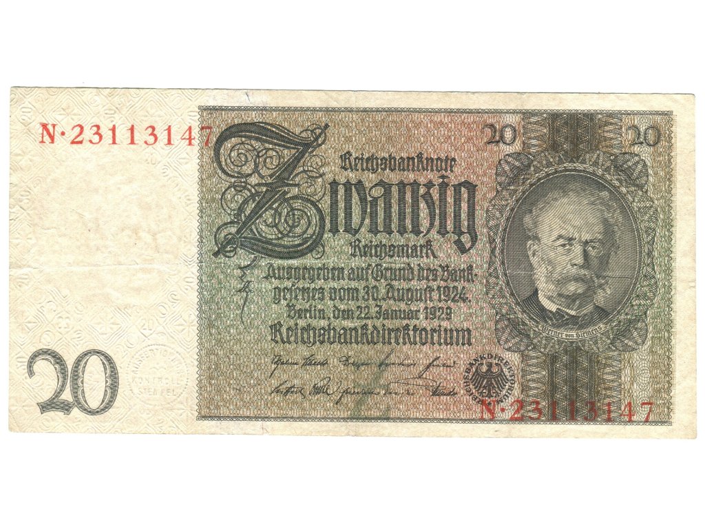 NĚMECKO. 20 Reichsmark. Ro. 174a. 22. 1.1929. Podtisk Z, série N.
