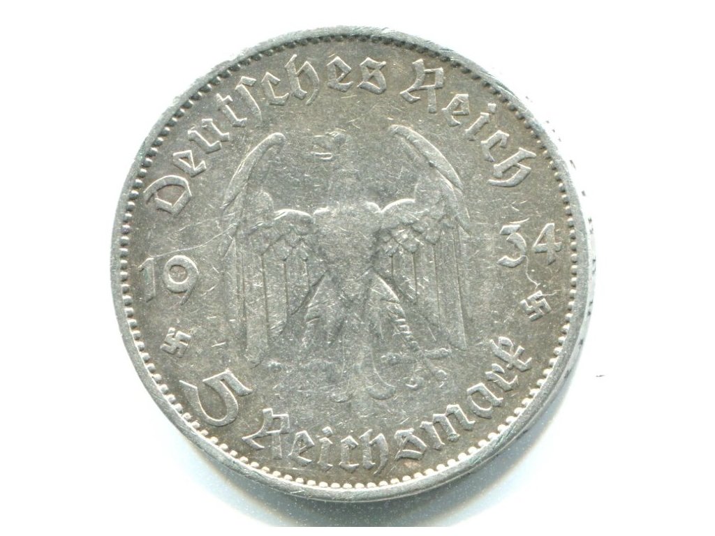 NĚMECKO. 5 Mark 1934/A. Věž. Ag.